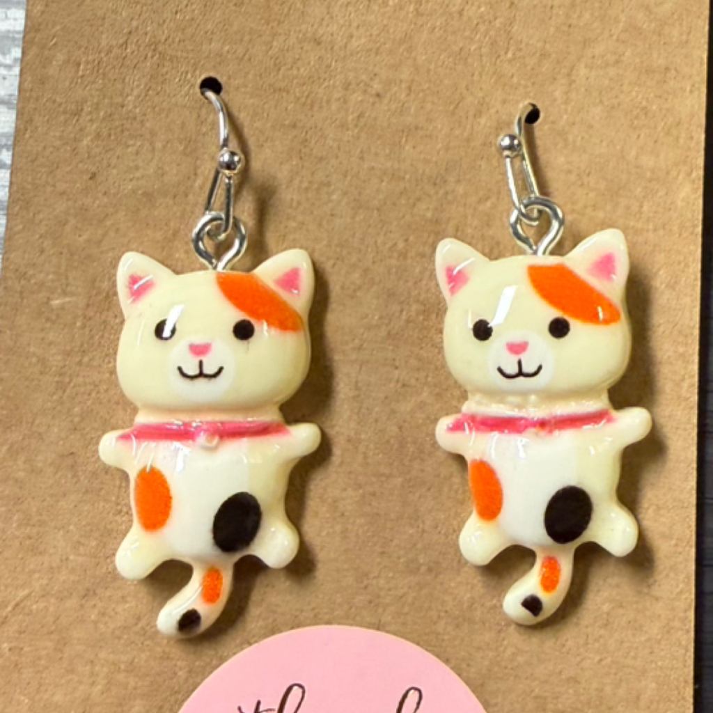 Calico Cat Hanging Earrings